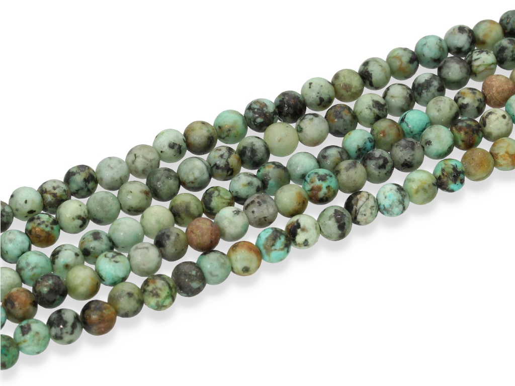 Turkus afrykański w kształcie kulki, sprzedawany w sznurach bez zapięcia, służących do samodzielnego tworzenia biżuterii. Cena dotyczy jednego sznura, który podczas kompletowania zamówienia jest wybierany losowo.