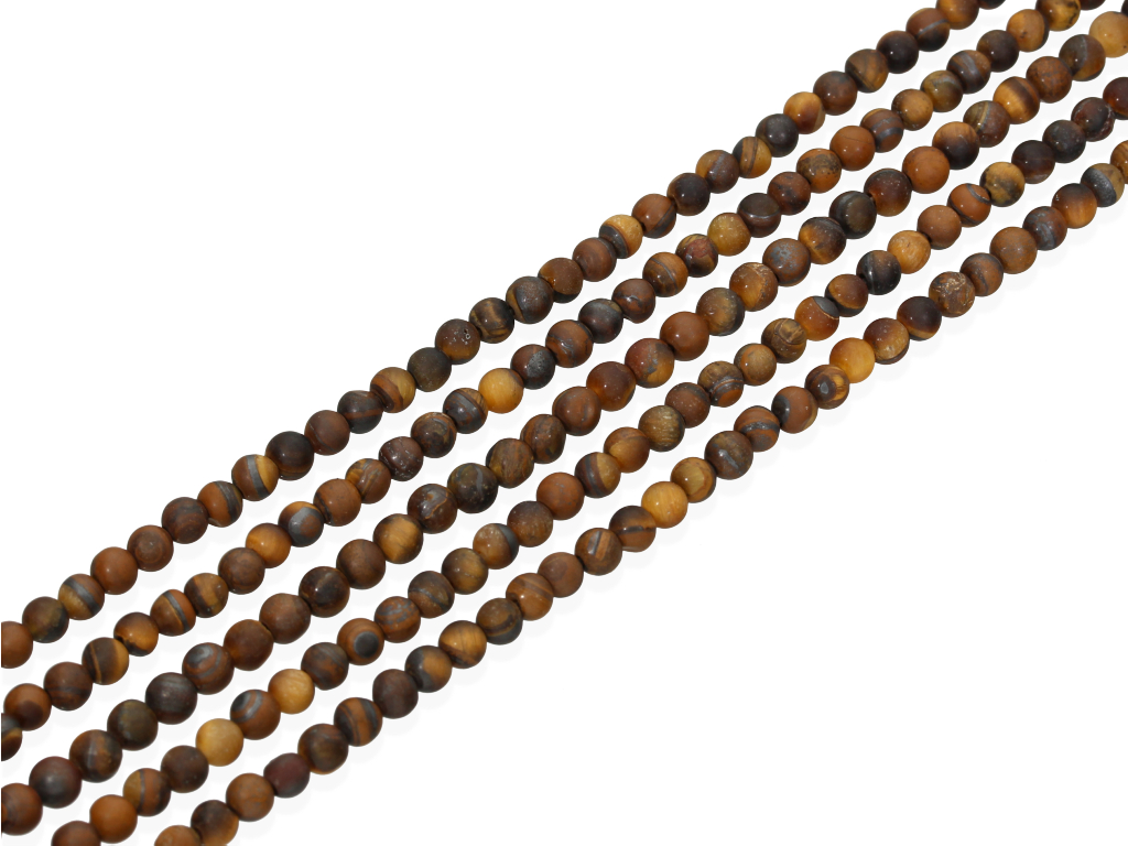 Tygrysie oko w kształcie kulki, sprzedawane w sznurach bez zapięcia, służących do samodzielnego tworzenia biżuterii. Cena dotyczy jednego sznura, który podczas kompletowania zamówienia jest wybierany losowo.