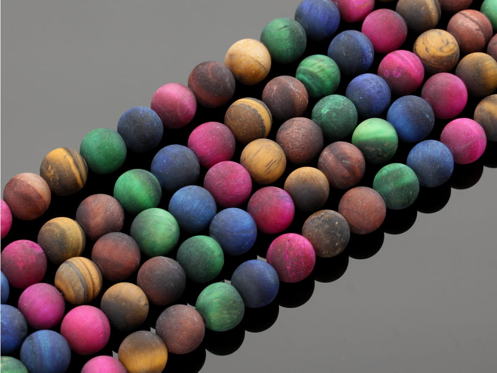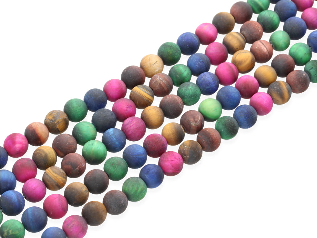 Tygrysie oko w kształcie kulki, sprzedawane w sznurach bez zapięcia, służących do samodzielnego tworzenia biżuterii. Cena dotyczy jednego sznura, który podczas kompletowania zamówienia jest wybierany losowo.