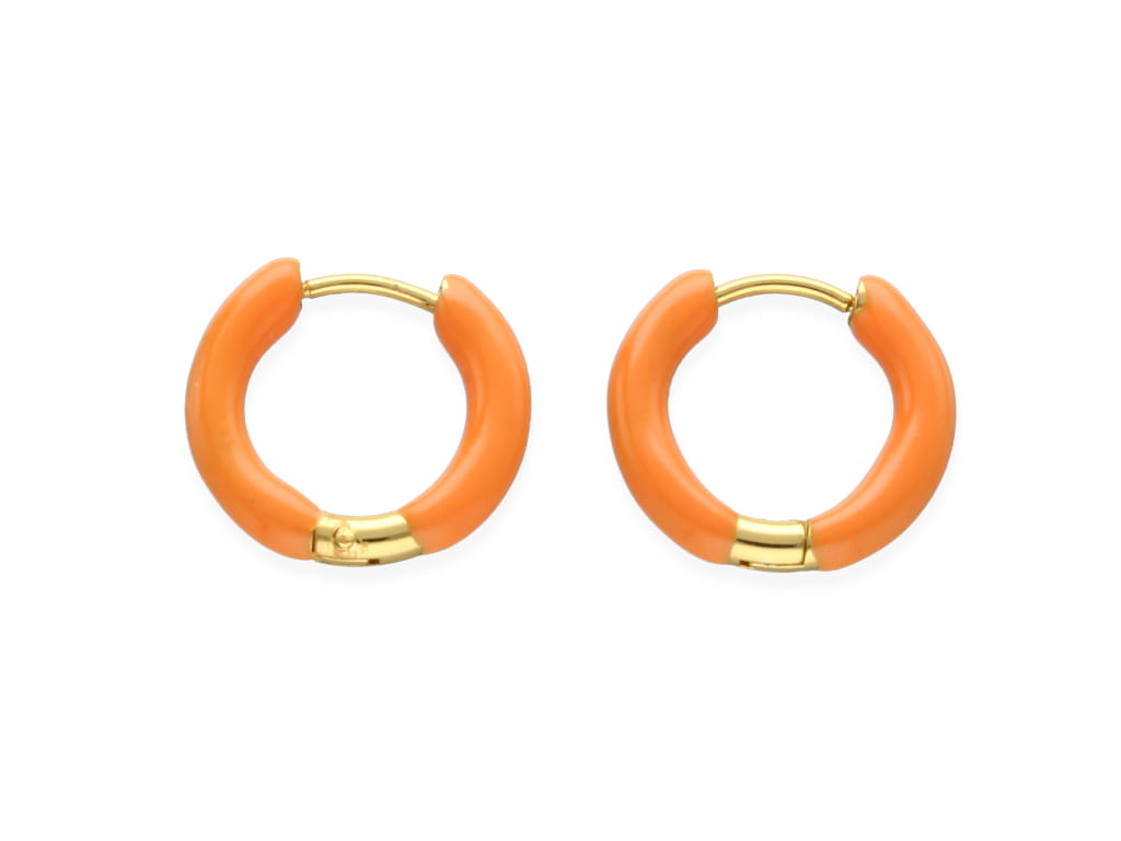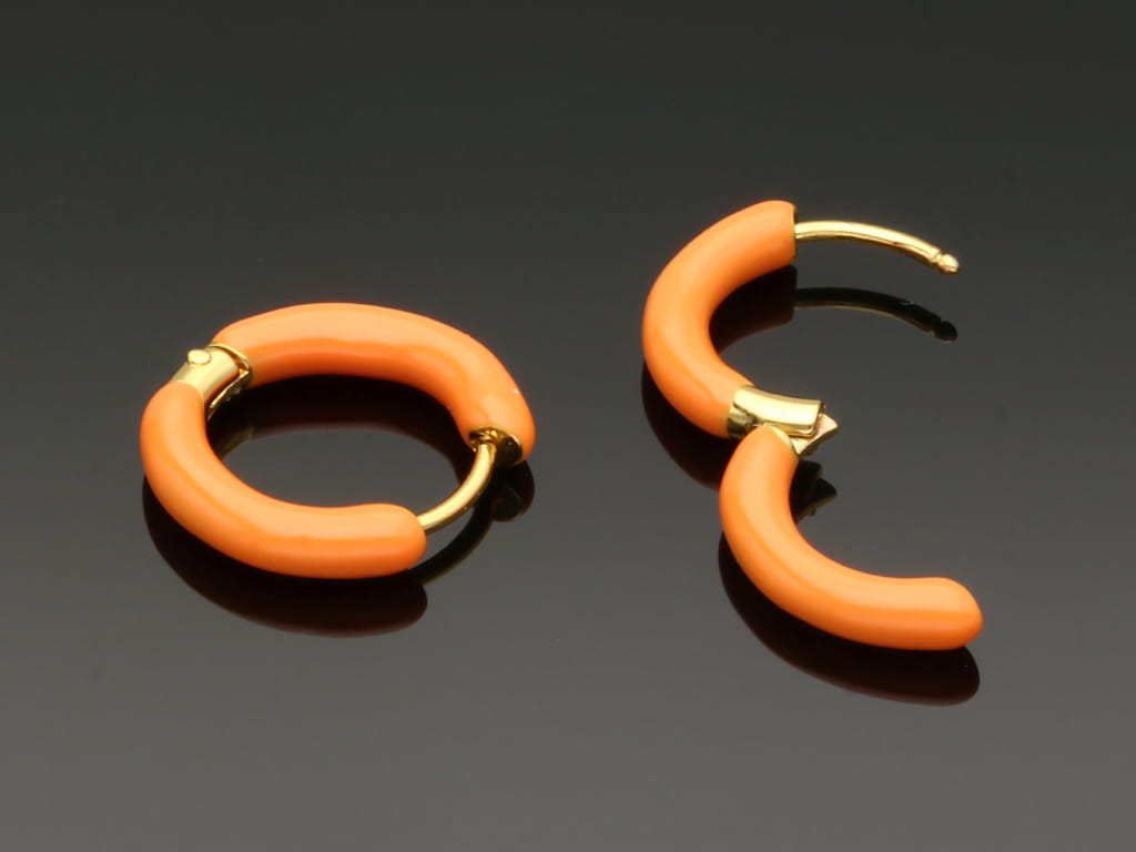 Złocone kolczyki emaliowane na pomarańczowo 18mm [para]