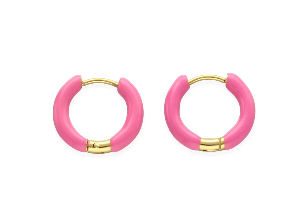 Złocone kolczyki emaliowane na różowo 18mm [para]