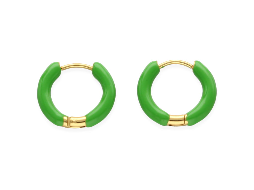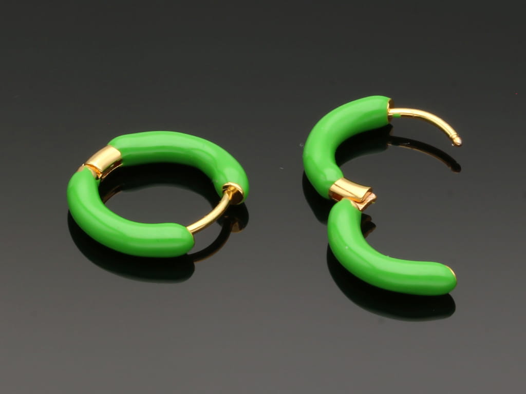 Złocone kolczyki emaliowane na zielono 18mm [para]