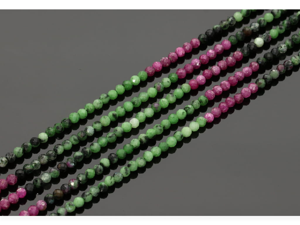 Zoisyt z rubinem kulka fasetowana ok.3mm [~39cm]